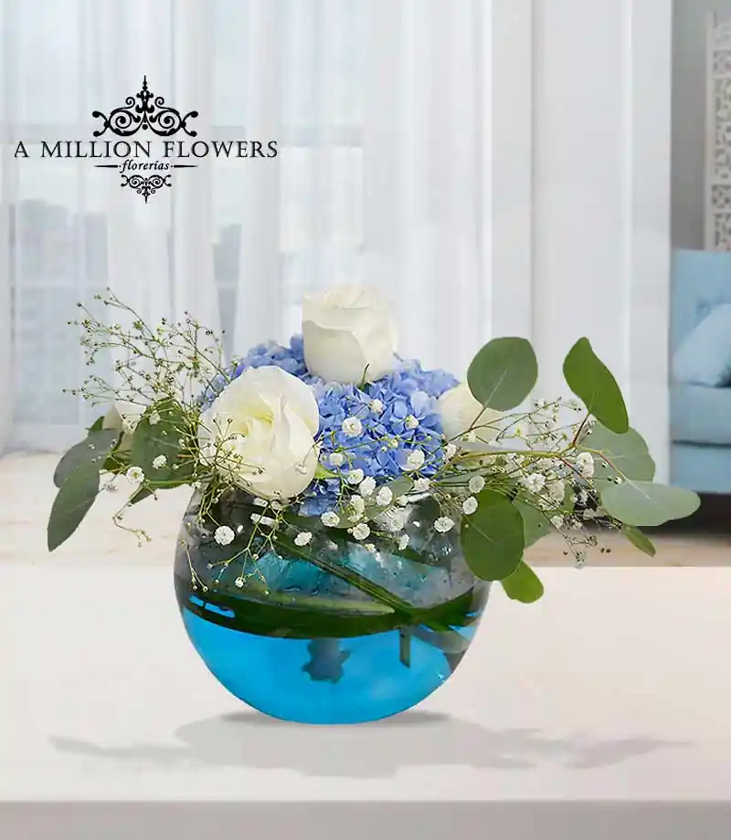 Arreglo Floral Pecera Blue