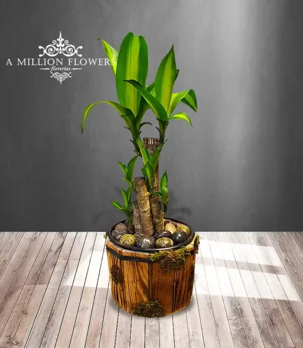 Regala esta hermosa planta tropical conocida como Palo de Brasil, como un regalo único y especial. Esta planta es conocida como el tronco de la felicidad, puede ser un buen obsequio para aquellos que se mudan o comienzan un nuevo negocio. Además, esta planta se asocia con la serenidad y el buen humor.